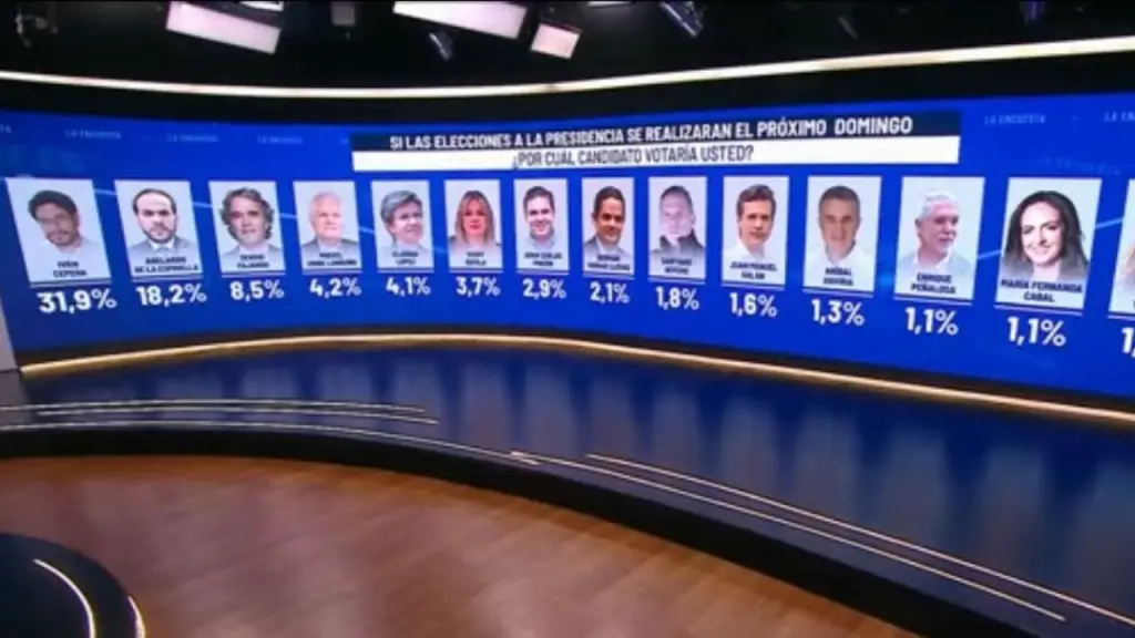 Los datos revelan un escenario claro en la preferencia electoral: Iván Cepeda lidera la encuesta con un 31,9 %. En segundo lugar se posiciona el abogado Abelardo de la Espriella, quien obtiene un 18,2 %, mientras que Sergio Fajardo aparece más atrás con un 8,5 %.