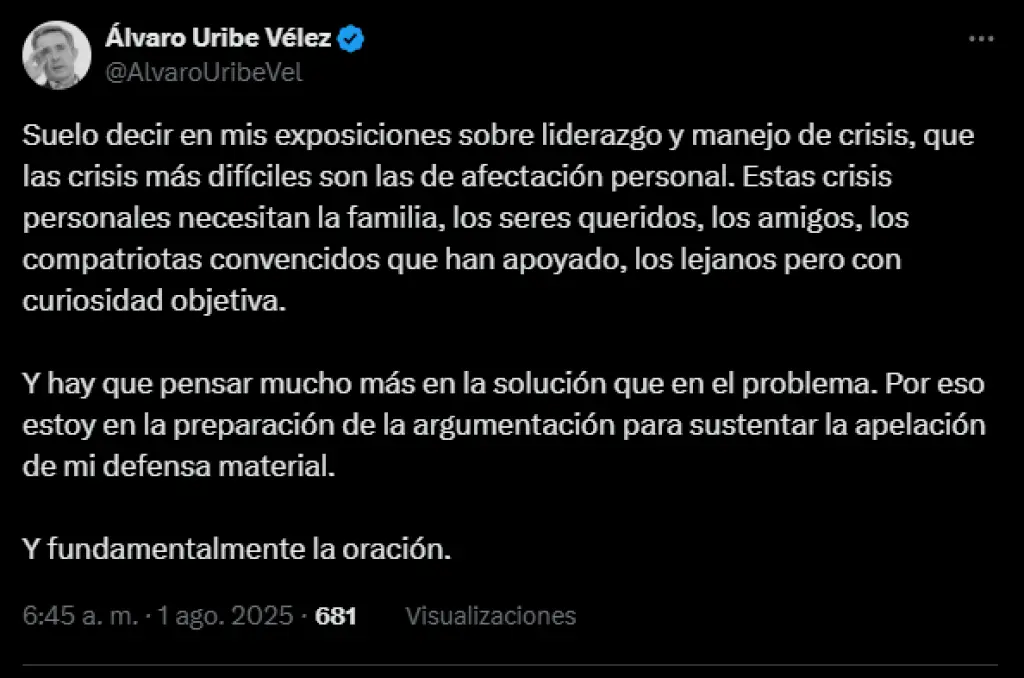 La reacción de Álvaro Uribe se dio como respuesta directa a un mensaje publicado por el presidente Gustavo Petro en su cuenta de X, en el que señalaba a la senadora Paloma Valencia de ser cómplice en los llamados “falsos positivos”.